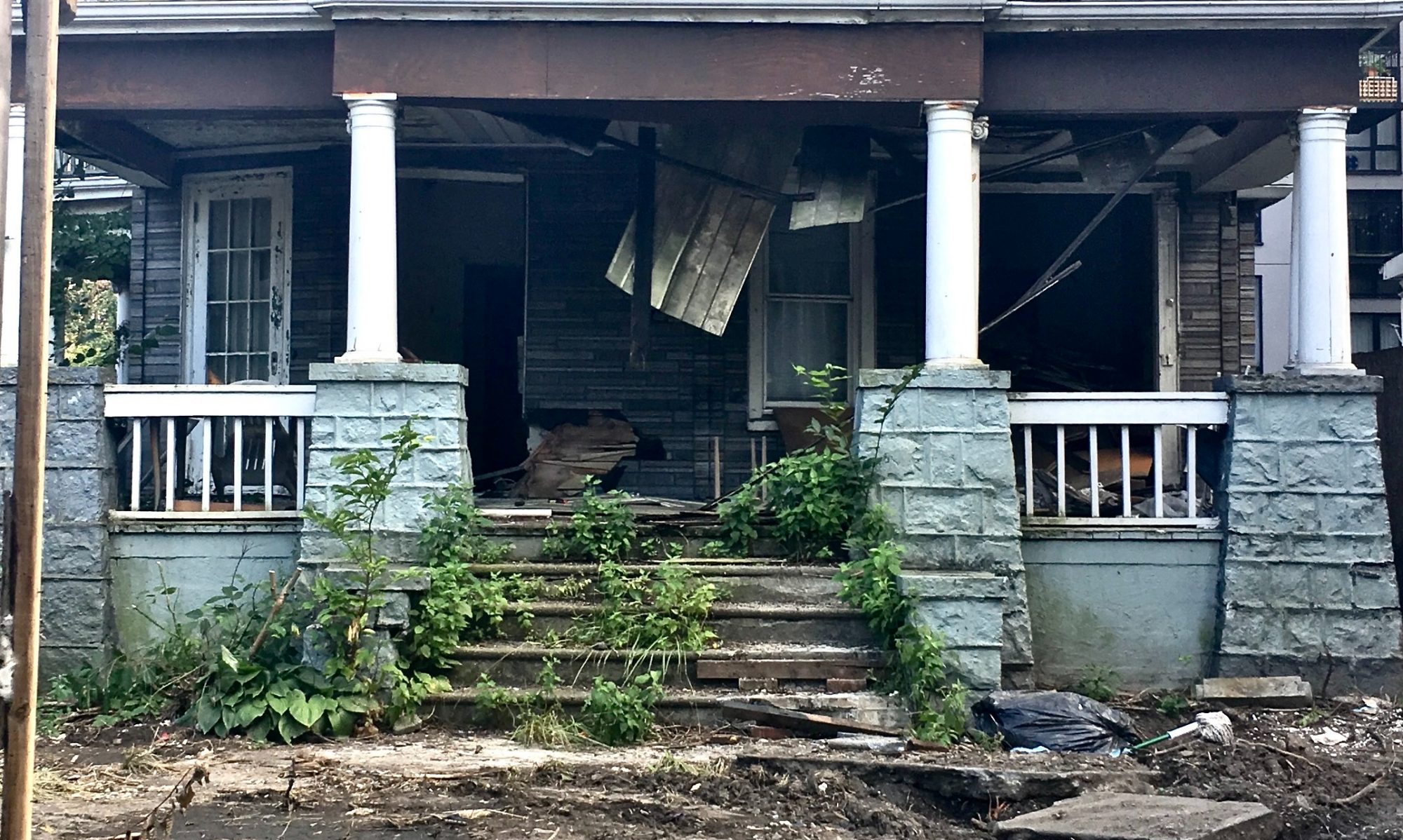 Lazy summer afternoon in the living room of an Edwardian house in Flatbush, just past the southern tip of “Prospect-Lefferts Gardens,” on the corner of Bedford and Lenox. The house is surrounded by scaffolding and construction.